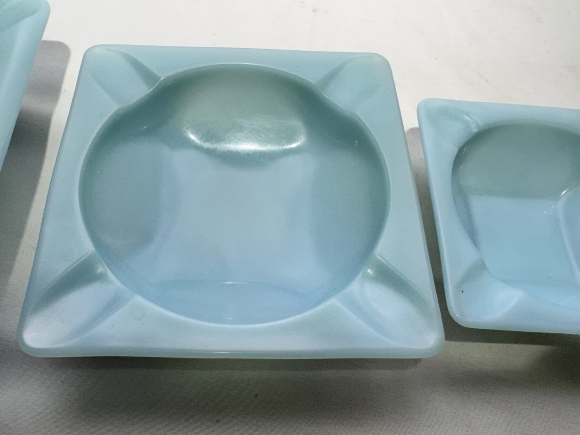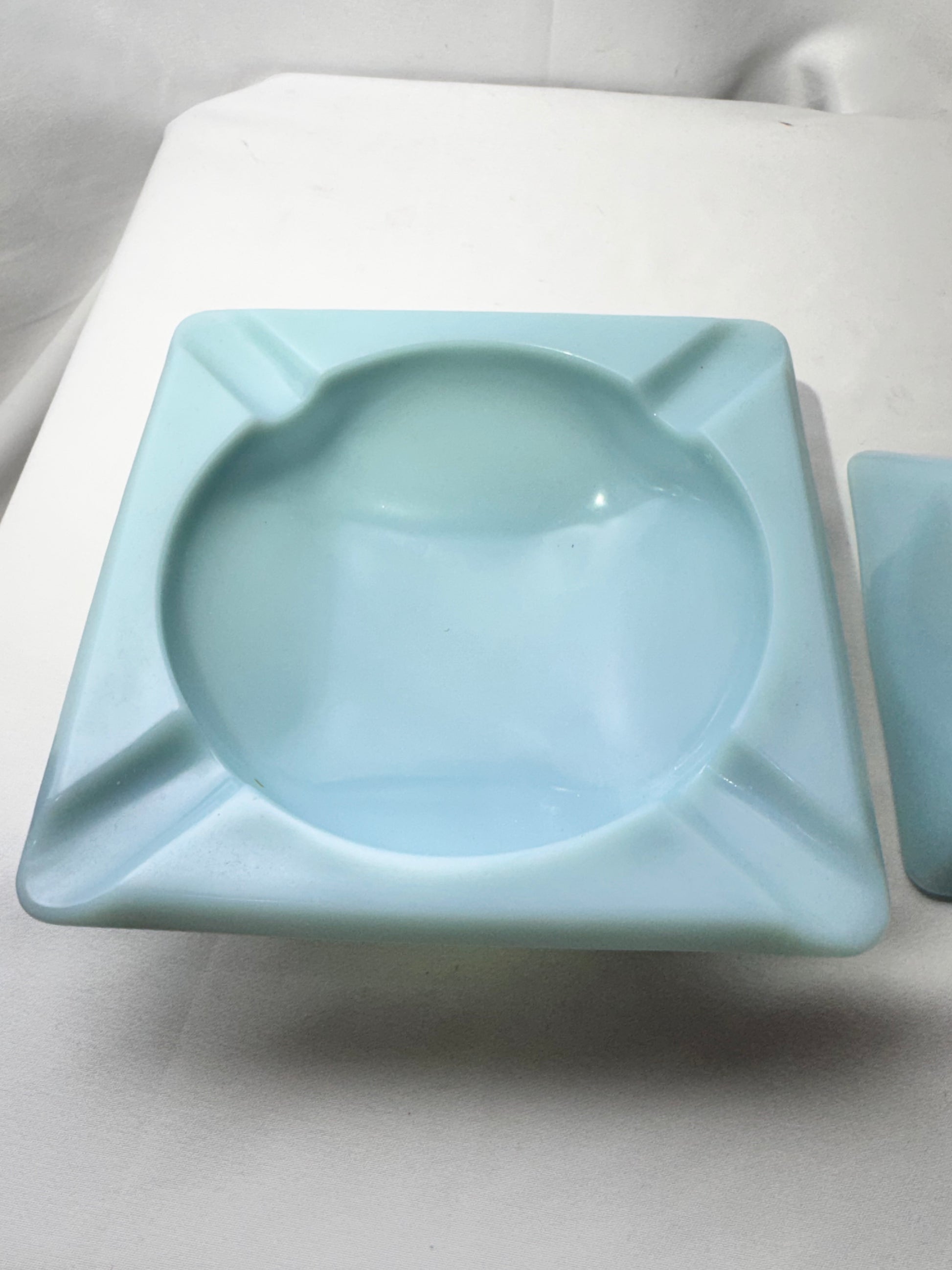 Vintage Turquoise Blue Stacking Ashtray Set – Delphite Milk Glass